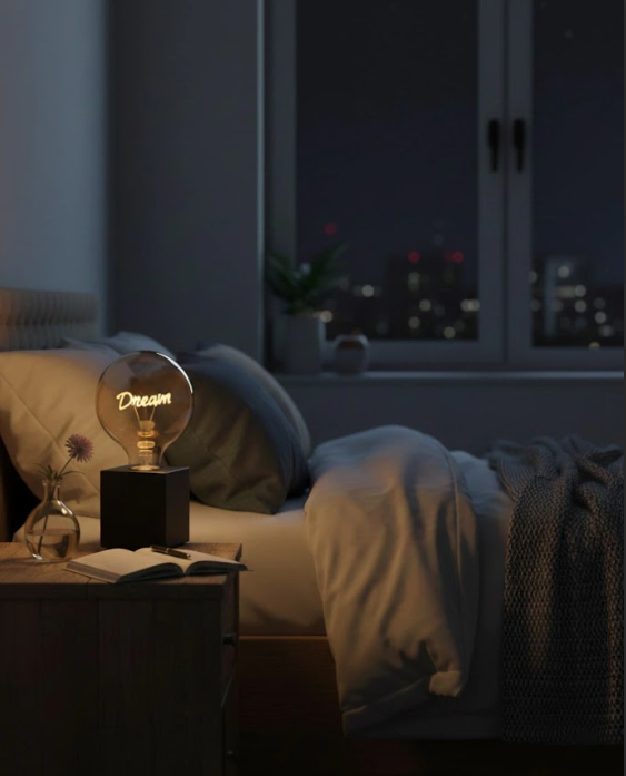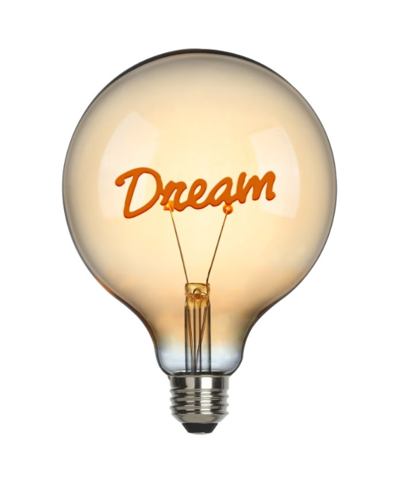 Transform your rooms into a place of dreams! The Dream LED lettering encased in an elegant light bulb with a gold finish creates a warm and inspiring atmosphere.