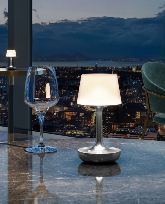 The GINN light combines modern design with innovative technology and adds a touch of magical flair to any room or outdoor area. This cordless rechargeable light offers warm, dimmable light that adapts perfectly to any mood. With just one touch, you can choose between three warm white colour temperatures (2700K, 3500K, 4000K) and 12 vibrant RGB colours. The 7-minute colour change ensures smooth transitions between all colour tones. With IP44 protection, the GINN is an elegant and functional highlight both indoors and outdoors, adding a stylish touch to your surroundings.