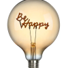 Bring joy and vibrancy to your rooms with our “happy” LED light bulb. The LED filament with the word “happy” creates a warm and cheerful atmosphere in any room.
