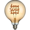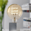 Make your home even cosier with this LED light bulb, which artfully sets the scene with the words “home sweet home”. The warm white light creates an inviting atmosphere and makes the light bulb a perfect addition to any room. Whether in the kitchen, living room or hallway – this light bulb is versatile. Thanks to the standard E27 base, the light bulb can be easily inserted into any conventional light fitting. With a service life of up to 15,000 hours, it is also environmentally friendly and efficient.