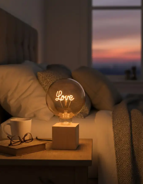 Add love and romance to your lighting with our light bulb, which features an enchanting ‘Love’ LED filament. This unique light bulb combines stylish design with a heartfelt message, creating a warm and loving atmosphere in your home.