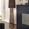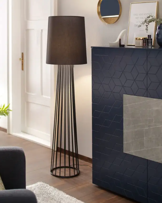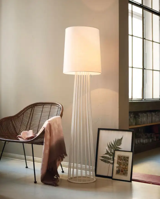 MAILAND’s character is a perfect interplay of noble shapes and classic grace. The MAILAND luminaire series embodies the distinctiveness and trend consciousness of the fashion city and delivers an individual atmosphere of unique elegance with a white and black variant. – The MAILAND floor lamp differs from conventional luminaires by its extraordinary design. The round base with vertical struts made of high-quality metal gives MAILAND an industrial look. Thanks to the very high, narrow fabric shade, the luminaire nevertheless exudes a homely atmosphere. Thanks to the uniform colour in black or white, MAILAND fits into every living room. The bulb for the E27 socket is not included in the delivery.