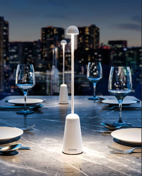 The MINIMAX rechargeable table lamp from Sompex – the perfect combination for indoors and outdoors! Made from high-quality aluminium, this table lamp is not only slim, but also extremely stable thanks to its low centre of gravity. The modern LED technology enables a choice of warm white (2200K) and neutral light (3000K). The light intensity can be adjusted as required using the touch sensor. The battery-powered light is splash-proof and therefore perfect for outdoor use.