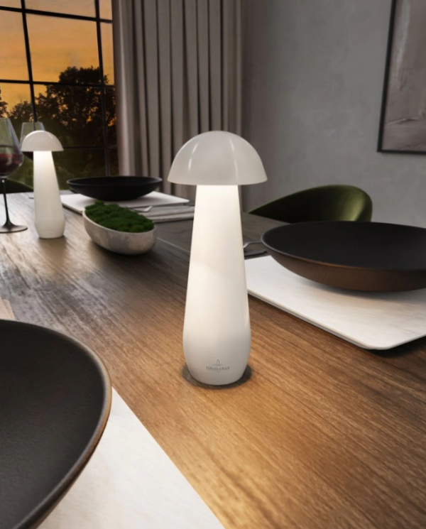 The Villeroy & Boch Modena rechargeable lights combine timeless elegance with state-of-the-art technology. With their curved mushroom shape, these lights capture the flair of Italian aesthetics and add a touch of class to any room or outdoor area. Thanks to their wireless design, they offer complete freedom of movement and can be used anywhere – from a romantic dinner on the terrace to stylish lighting in the living room. The powerful rechargeable battery provides hours of atmospheric light, and thanks to the integrated dimmer, you can adjust the brightness perfectly to your needs.