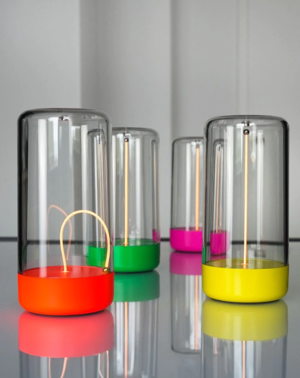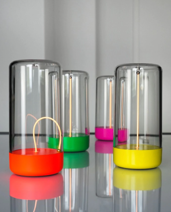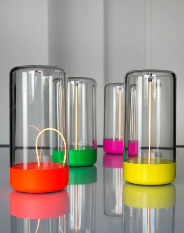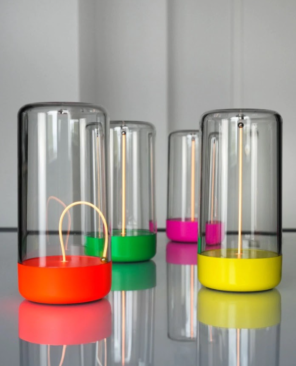 Experience modern design and innovative lighting technology with the new PULSE table lamp. The LED filament appears to float in the air without support and can be moved within the light. The lamp has an IP54 rating for indoor and outdoor use, and can be charged conveniently via USB-C. It offers three light settings: 15% brightness, 100% brightness, and pulsating light. The PULSE is ideal for restaurants, as a decorative lamp, or as a stylish desk accessory.