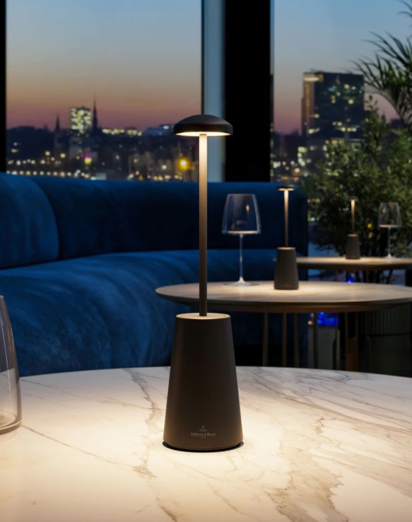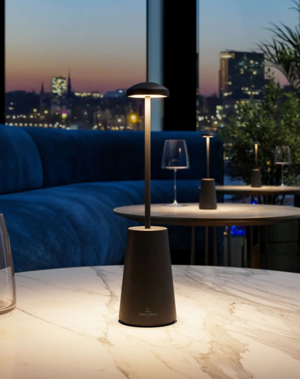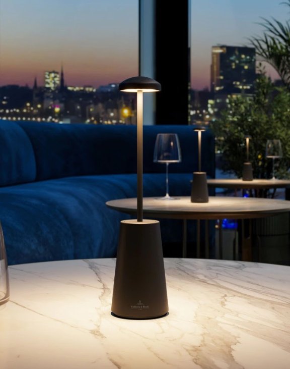 The SIENA rechargeable table lamp from the exquisite Villeroy & Boch collection – named after the picturesque town in Tuscany. Made from high-quality aluminium and an elegant marble base, this lamp is the perfect accompaniment for cosy evenings and stylish ambience – indoors or outdoors. Whether you want to enjoy a romantic dinner on the terrace or illuminate a restaurant in style, the SIENA fits perfectly and creates the right atmosphere with minimal space requirements. Enjoy the gentle adjustment of light intensity with a long press on the touch dimmer and choose between warm white and extra warm light for the perfect mood. Thanks to the magnetic charging cable, charging is child’s play: simply place the light on the charging station and as soon as the red indicator light goes out, the light is fully charged and ready for use.