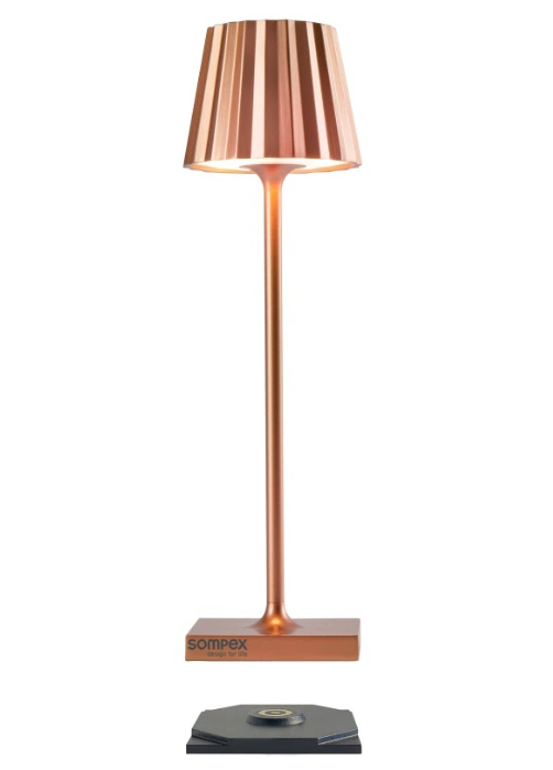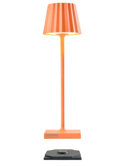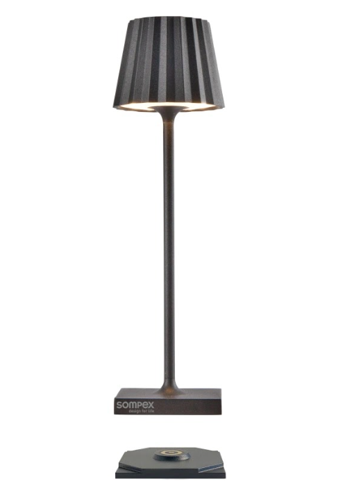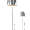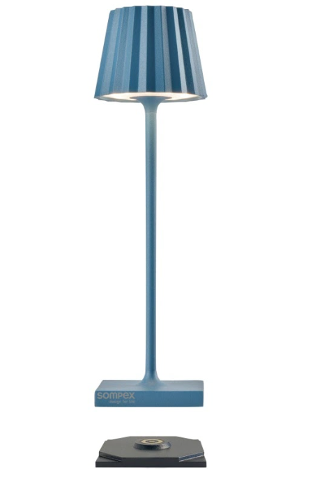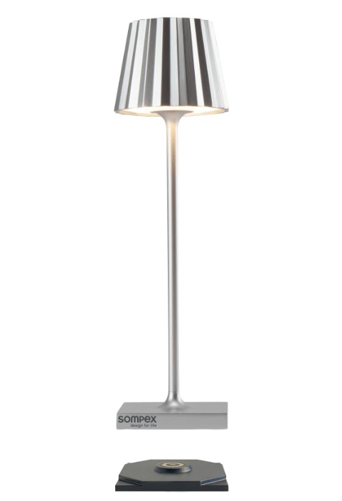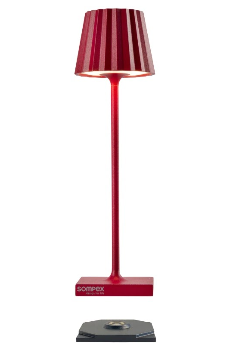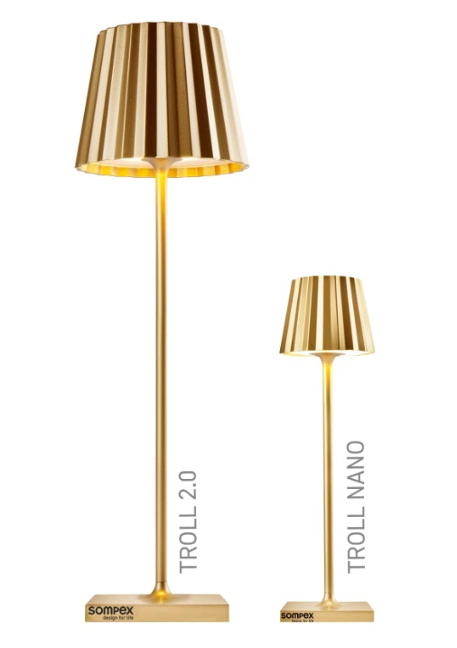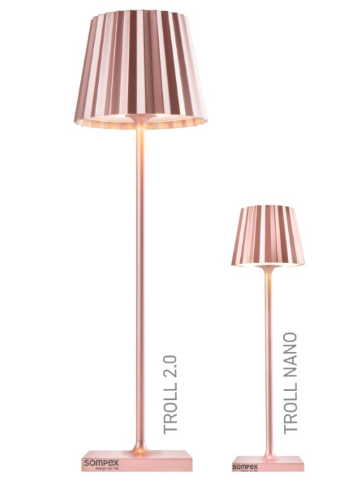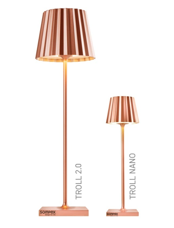 TROLL NANO – the small indoor & outdoor table lamp with the unique pleated shade. Made of aluminium and available in various colours, the TROLL NANO can be used indoors and outdoors. The powerful rechargeable battery provides up to 52 hours of cordless light. The touch sensor on the top of the luminaire can be used to dim the light continuously and to choose between two warm white light colours. The TROLL NANO can be recharged in the blink of an eye via the supplied charging station.